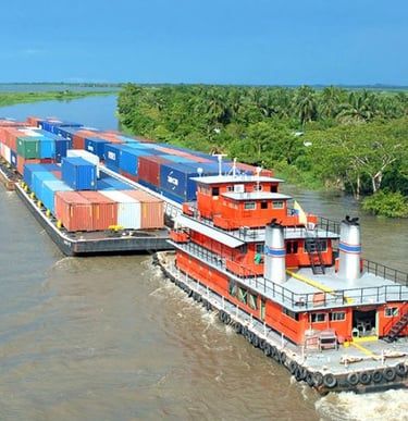 Brindamos soluciones logísticas nacionales e internacionales, coordinando transporte terrestre, fluvial y marítimo.